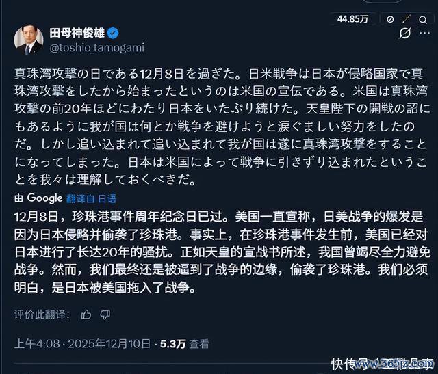 惹完中国惹好意思国?高市盟友反咬:日本莫得偷袭珍珠港,是好意思国栽赃